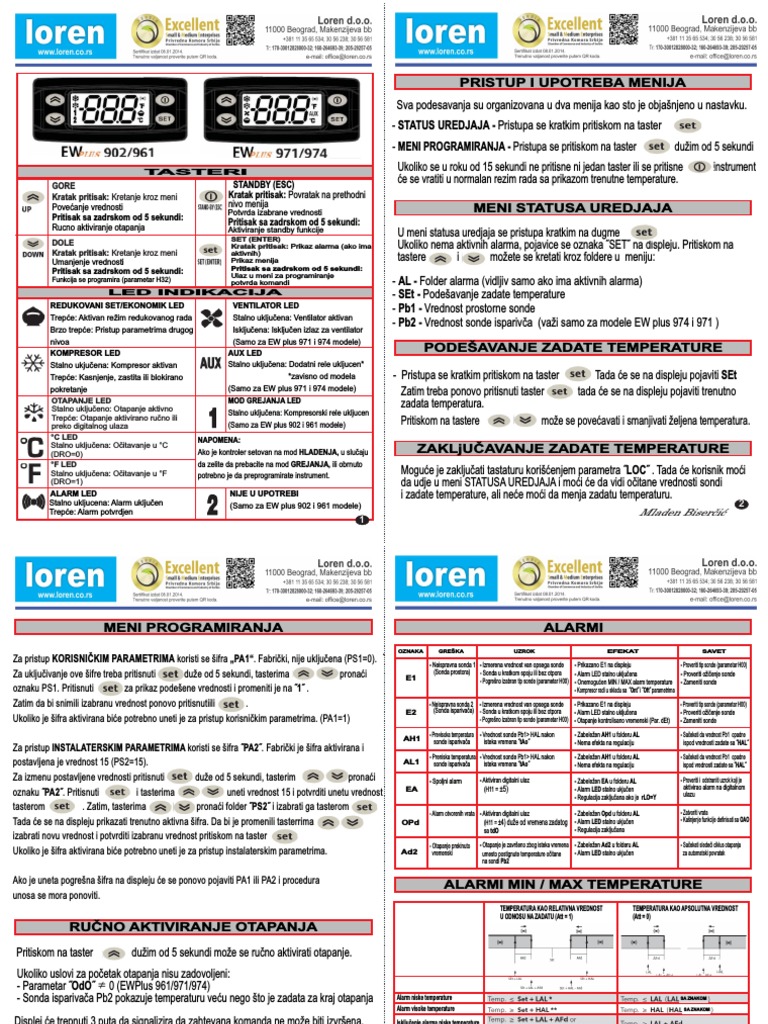 Eliwell Control SRL i Distributer LOREN DOO BEOGRAD se odriu svake odgovornosti za stetu nastalu zbog: