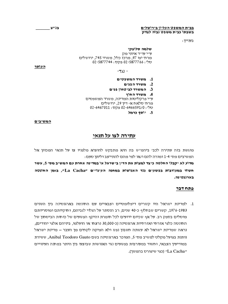 עתירה: לחייב את המדינה להסגיר לארגנטינה חשוד בפשעי מלחמה