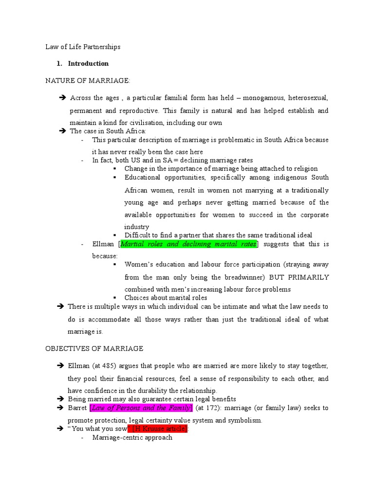Barret [Law of Persons and the Family] (at 172): marriage (or family law) seeks to