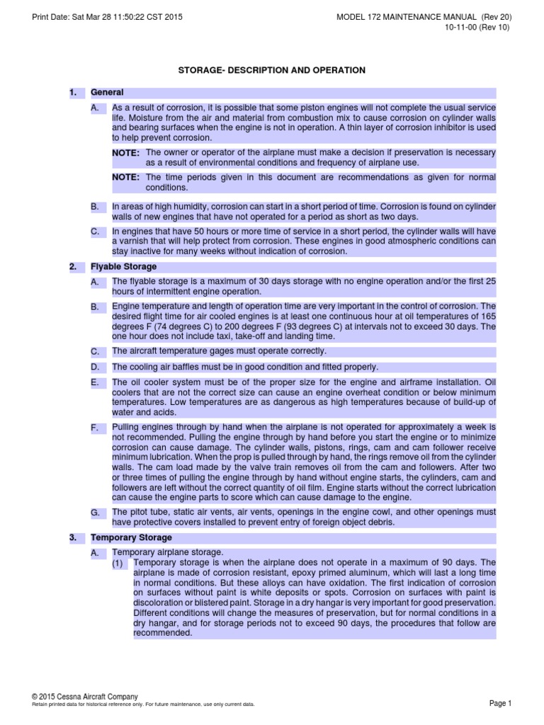 (1) Temporary storage is when the airplane does not operate in a maximum of 90 days. The
