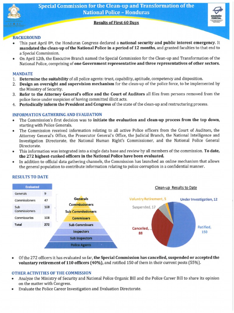 Materials distributed to attendees of the June 16 event at the Wilson Center on Honduras' police reform efforts