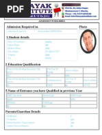 Declaration: I Declare that all the statement given in this application form are true to the best of my knowledge. I understand that if any of the statements is found wrong my admission will stand