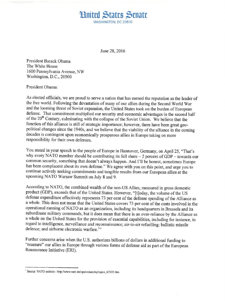Sens. Lee, Sessions Call For Higher Defense Spending By NATO Members