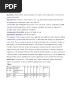 angle 100 mL in top 1000 mL in bottom cap on6 in long X 4 in out Triangle (right angle)in out and see how far