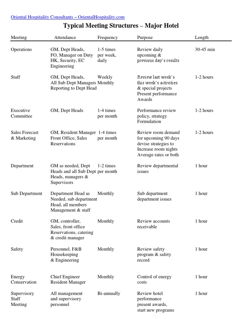 Meeting Attendance Frequency Purpose Length