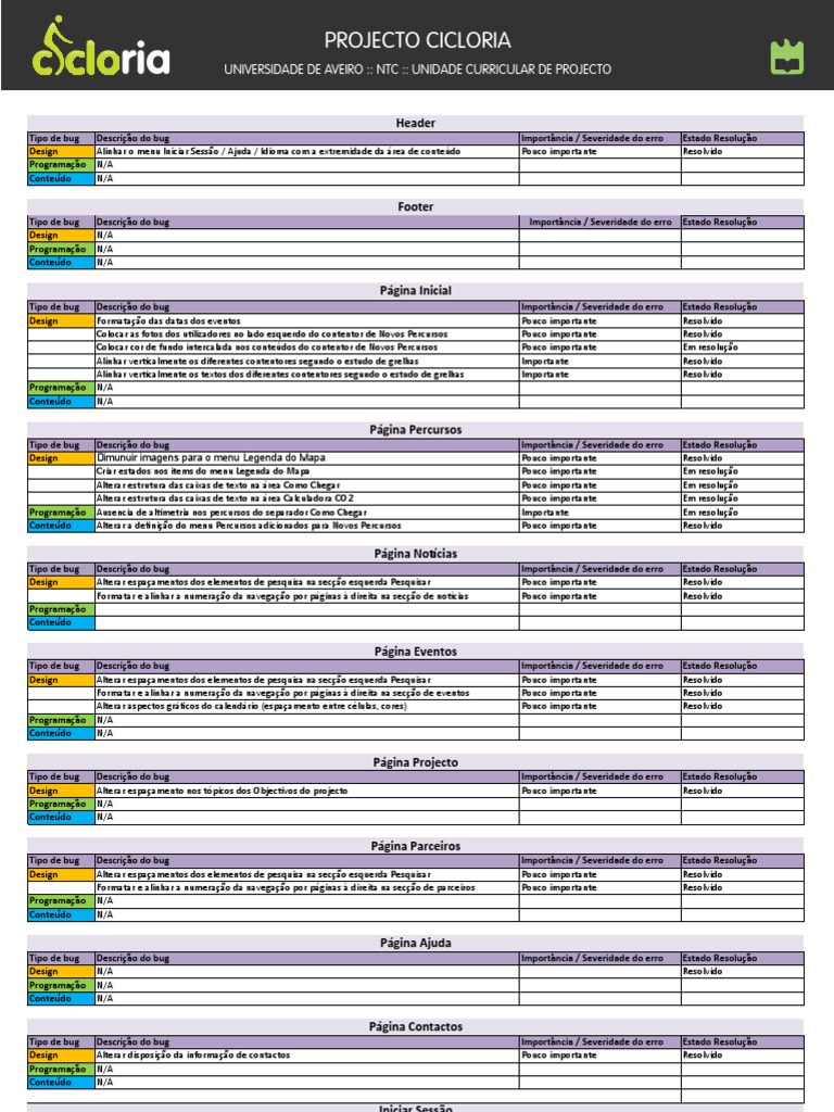 Design Alterar espaçamento nos tópicos dos Objectivos do projecto Pouco importante Resolvido