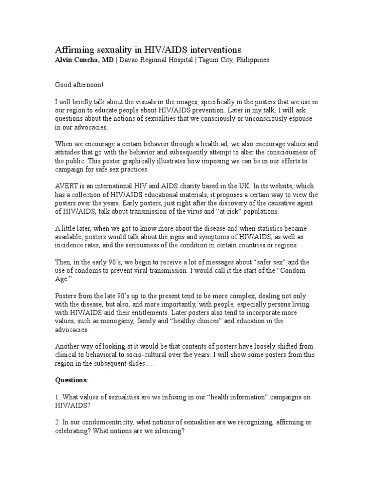 of HIV/AIDS, talk about transmission of the virus and “at-risk” populations.