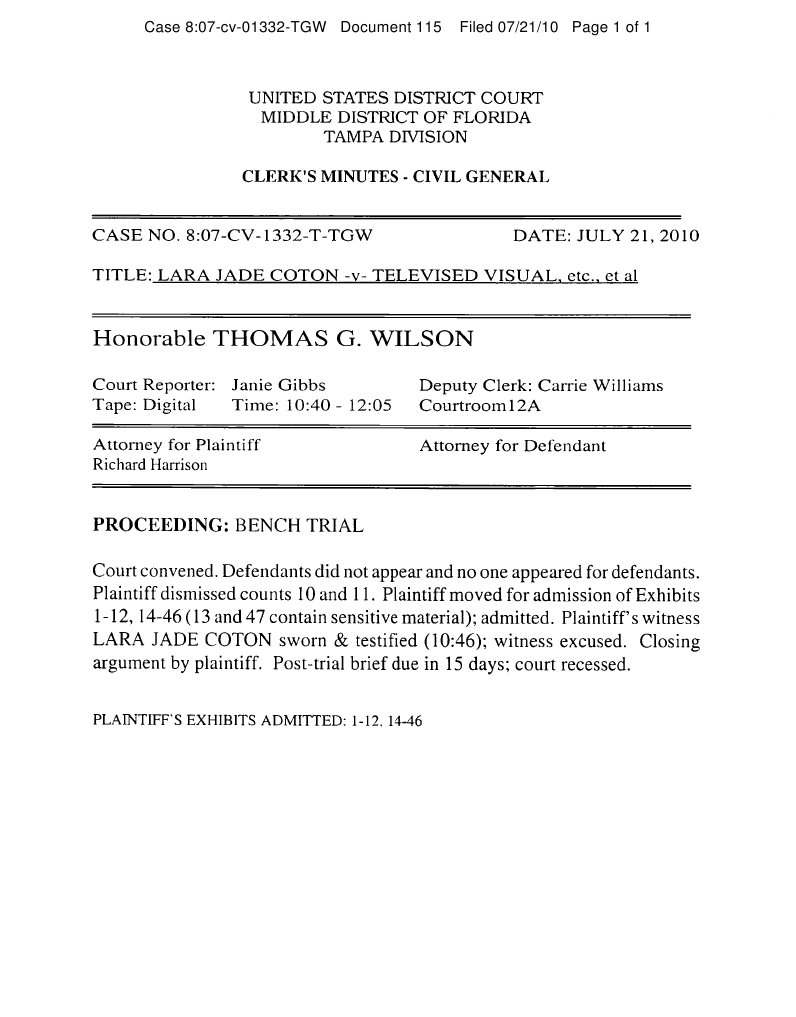 The summary of the bench trial in the Lara Jade case.