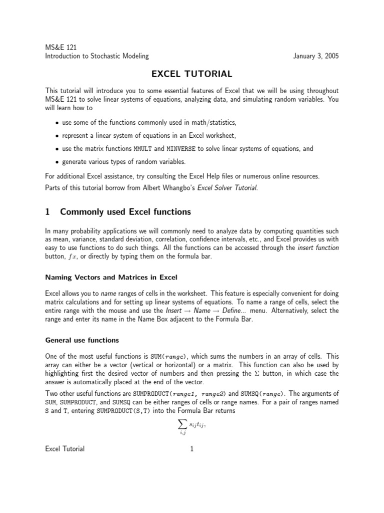 MS&E 121 to solve linear systems of equations, analyzing data, and simulating random variables. You