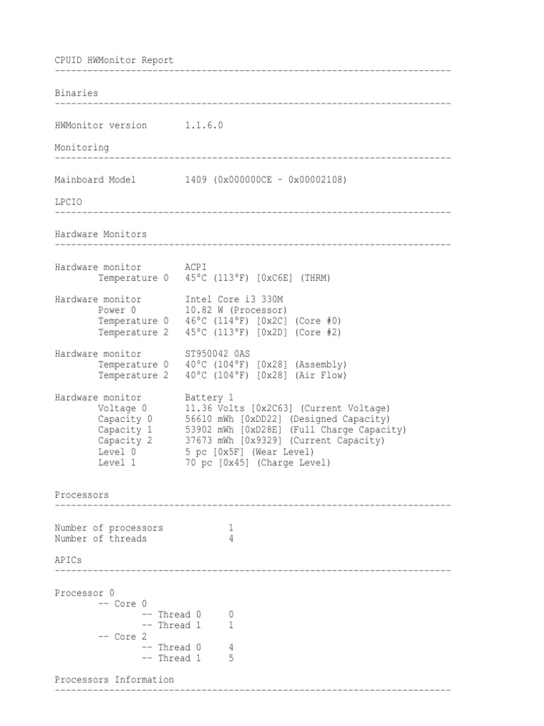 Hardware monitor Intel Core i3 330M