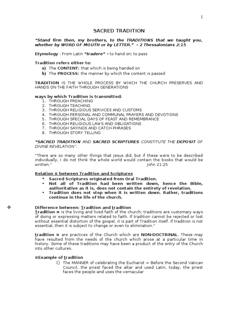 of doing or expressing matters related to faith. If tradition cannot be rejected or lost