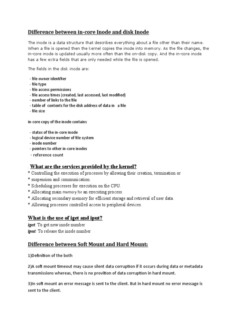Difference between in-core Inode and disk Inode