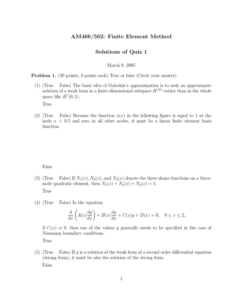 (6) (True False) Higher order shape functions can increase the accuracy of an approxi-