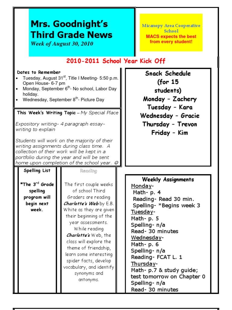 Please see the attached newsletter describing Meredith Goodnight, Third Grade