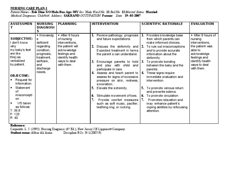 Medical Diagnoses: Clubfoot Address: SAKRAND OCCUPATION: Farmer Date: 19--03-2007