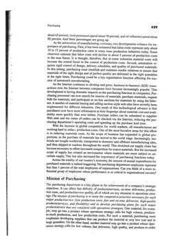 production. For this material, purchasing must emphasize fast response times by suppliers. very high quality, and dependable shipping schedules.