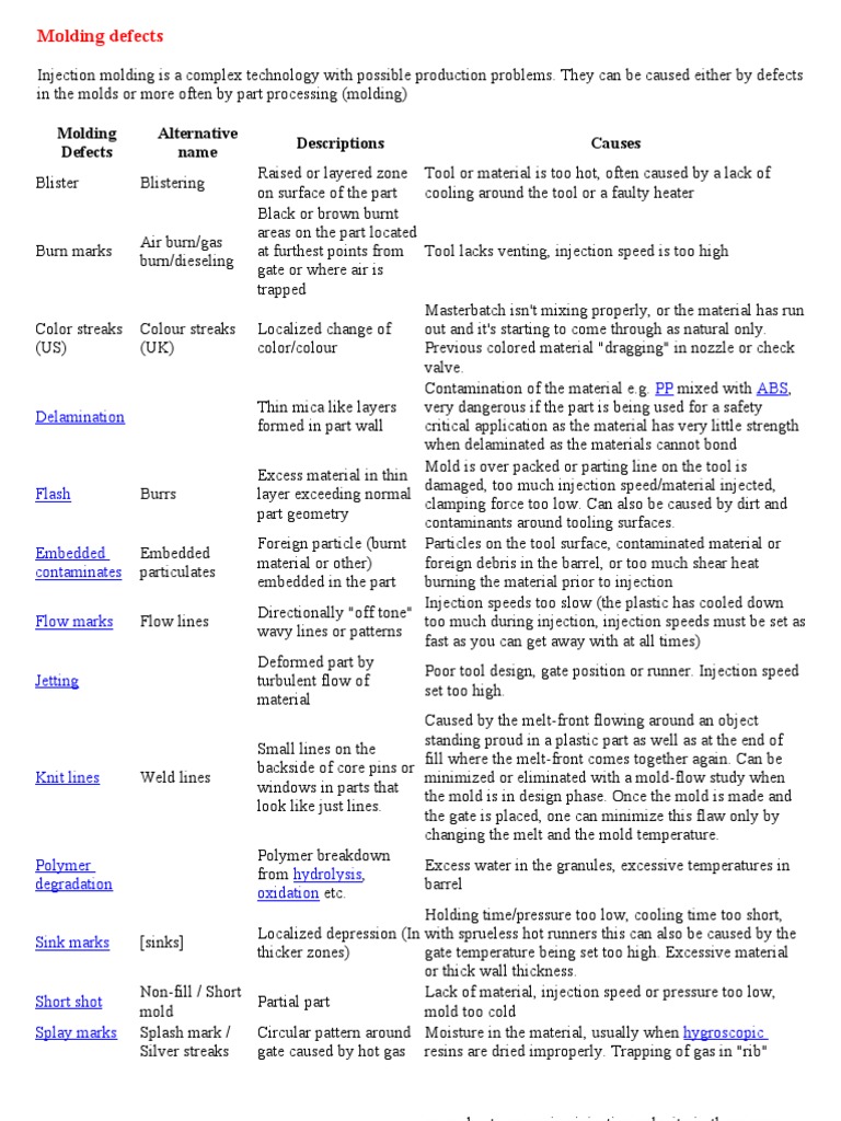 Injection molding is a complex technology with possible production problems. They can be caused either by defects