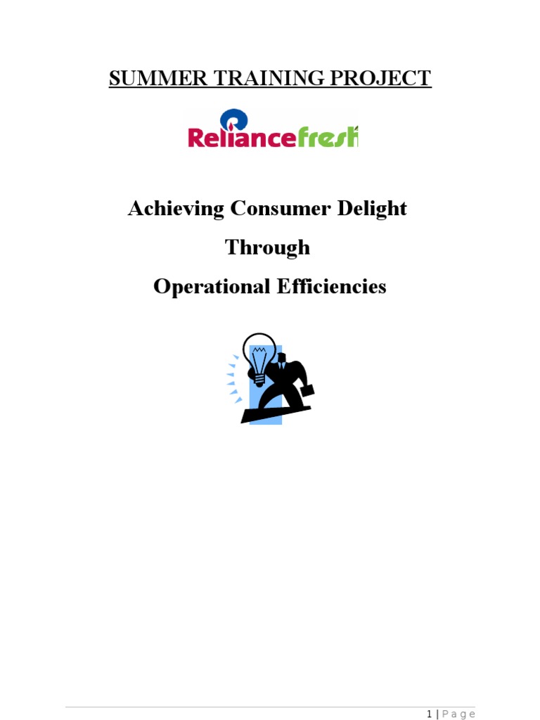 I have done my Summer Training Project on Achieving Consumer Delight from Reliance