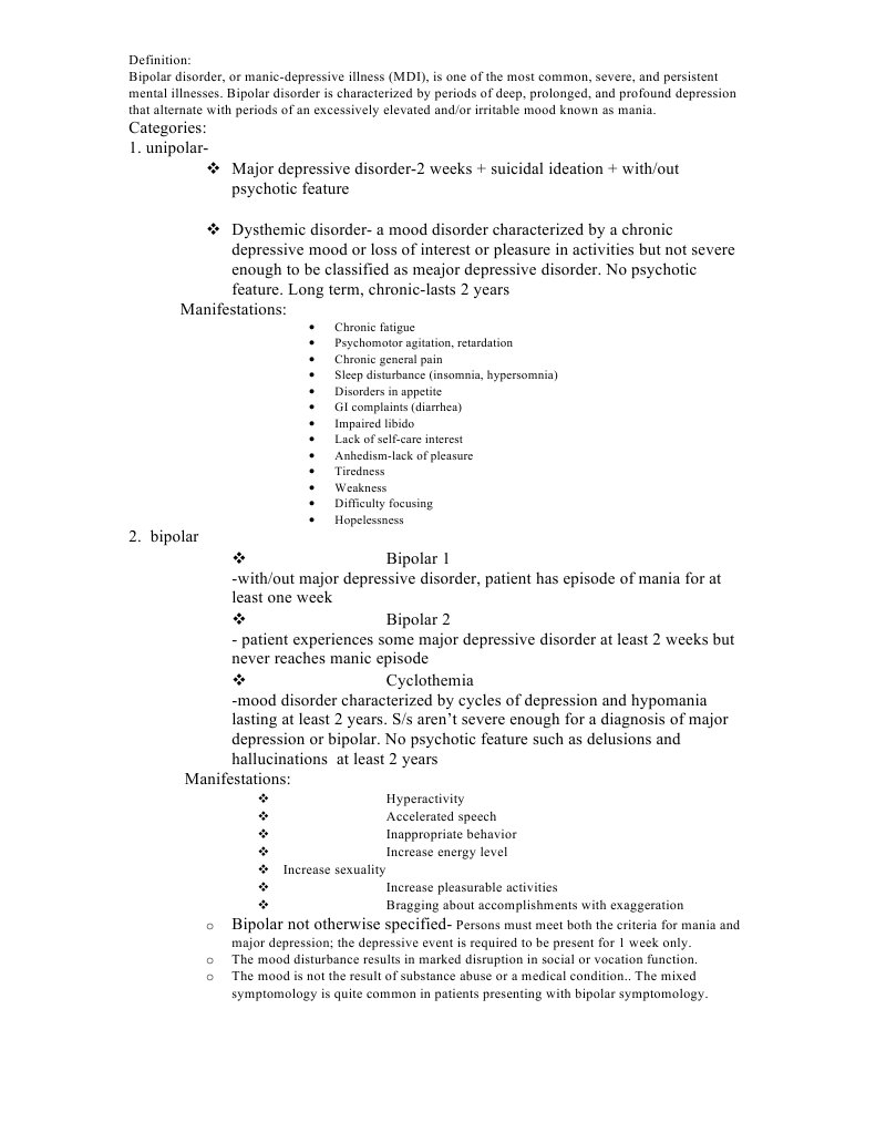 o Bipolar not otherwise specified- Persons must meet both the criteria for mania and