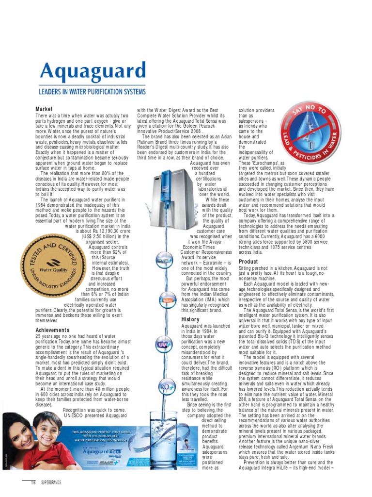 posed. Today, a water purification system is an of the product, Today, Aquaguard has transformed itself into a