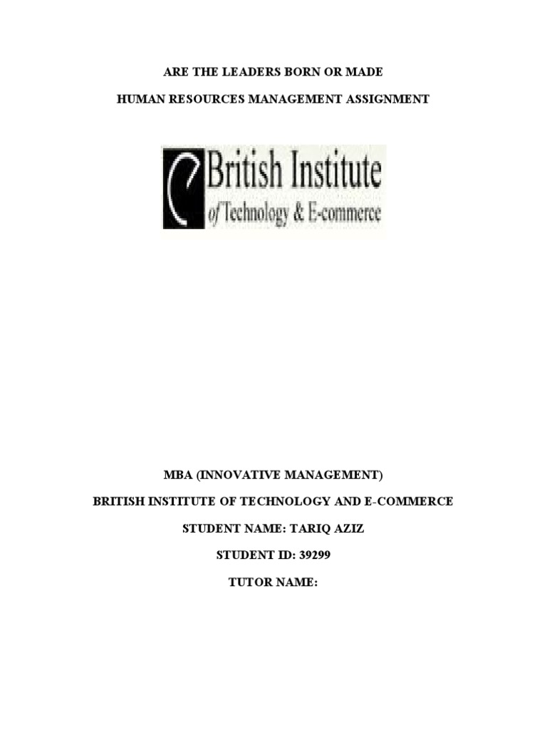 Some researcher argue that leaders are always born with the qualities that are required for a