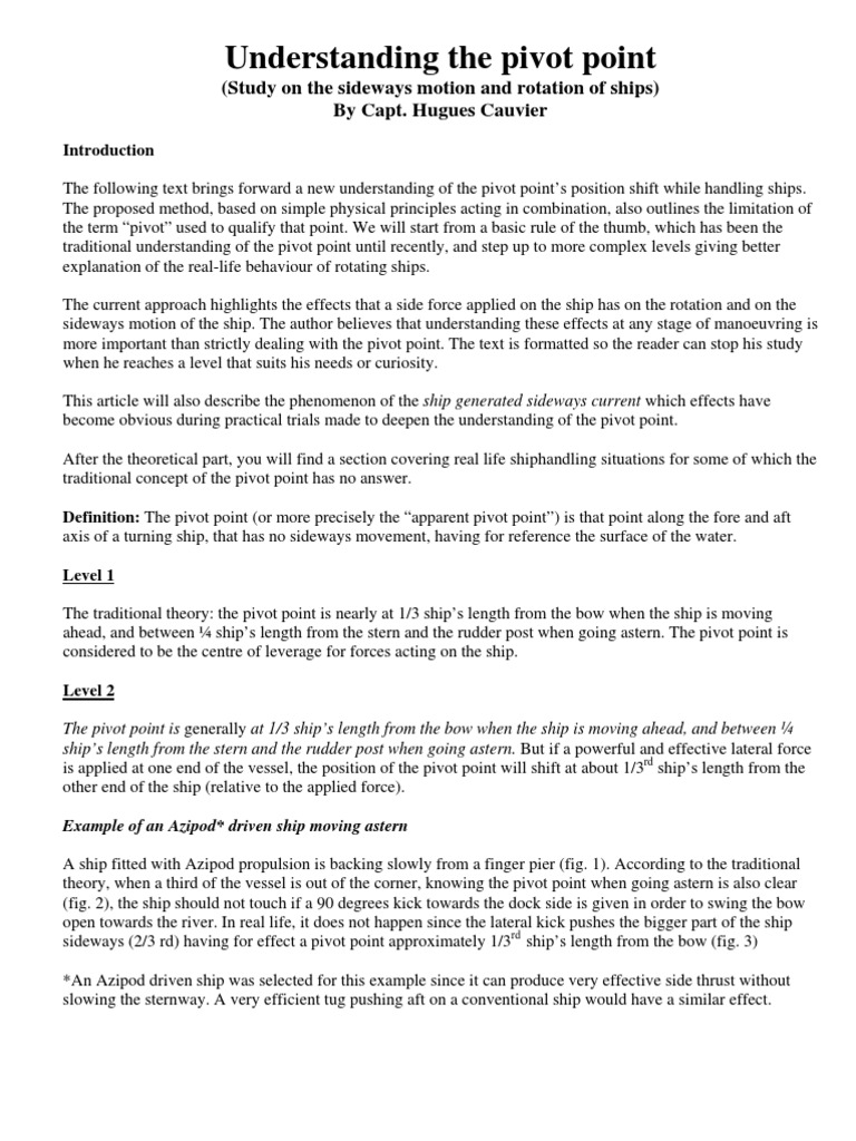 The following text brings forward a new understanding of the pivot point’s position shift while handling ships.