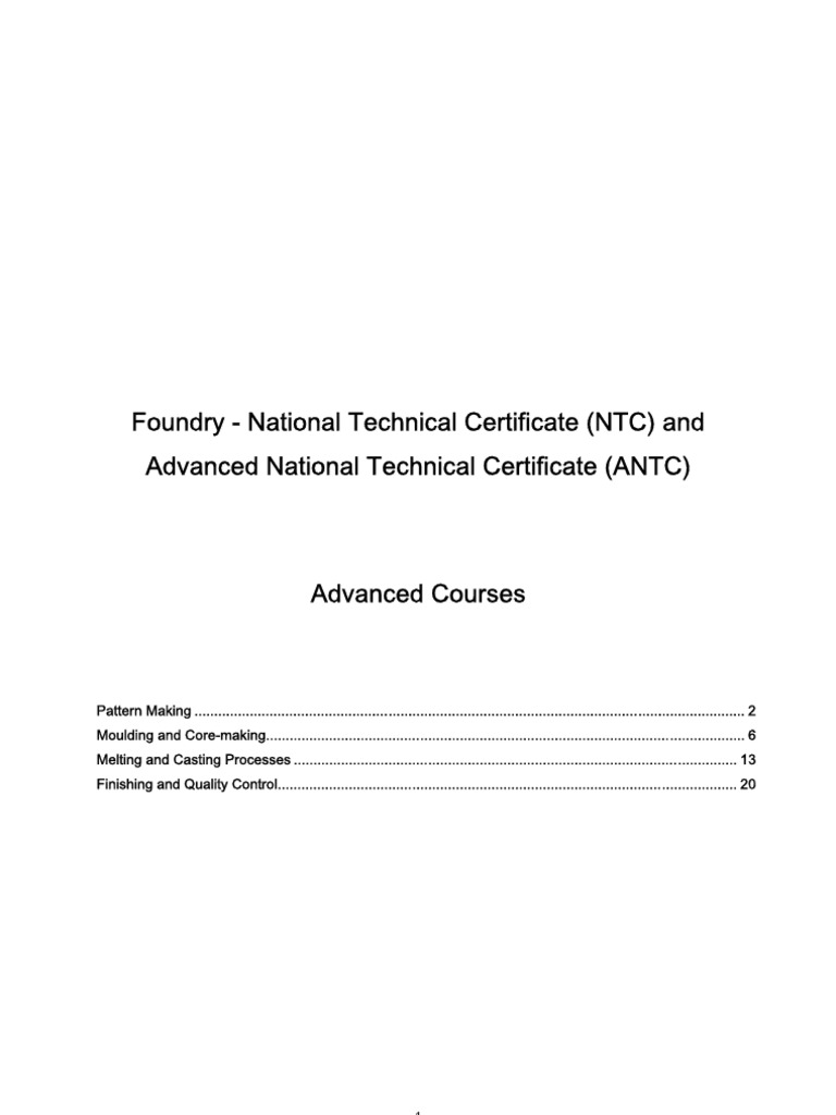 PROGRAMME: ADVANCED NATIONAL TECHNICAL CERTIFICATE IN FOUNDRY