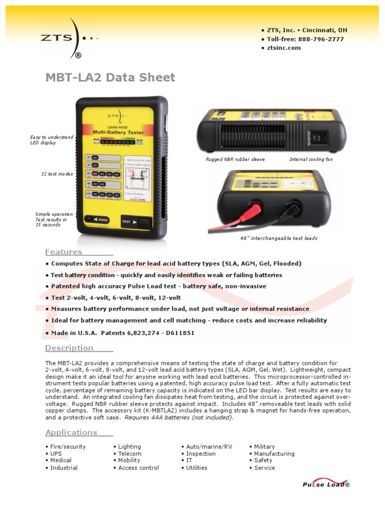 strument tests popular batteries using a patented, high accuracy pulse load test. After a fully automatic test