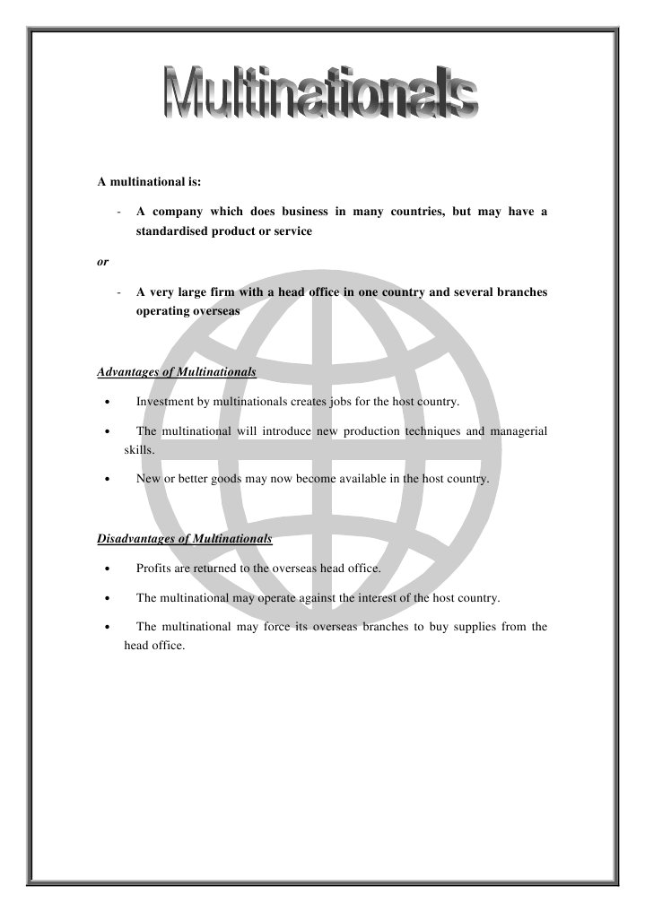 Advantages of Multinationals