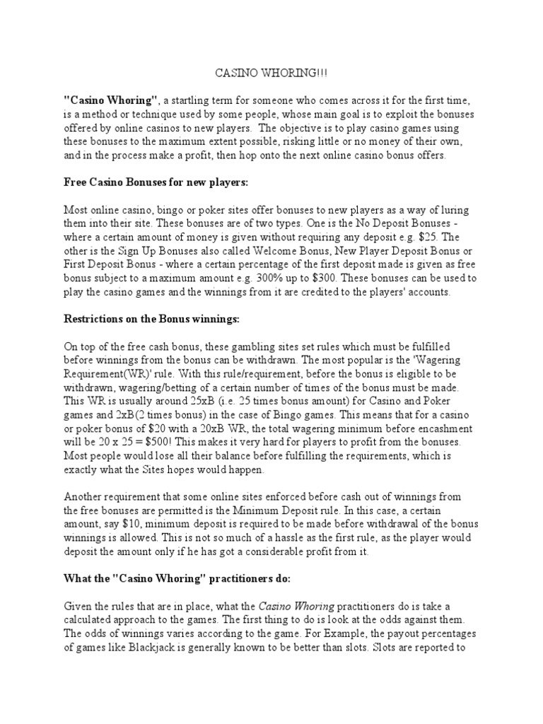 Given the rules that are in place, what the Casino Whoring practitioners do is take a