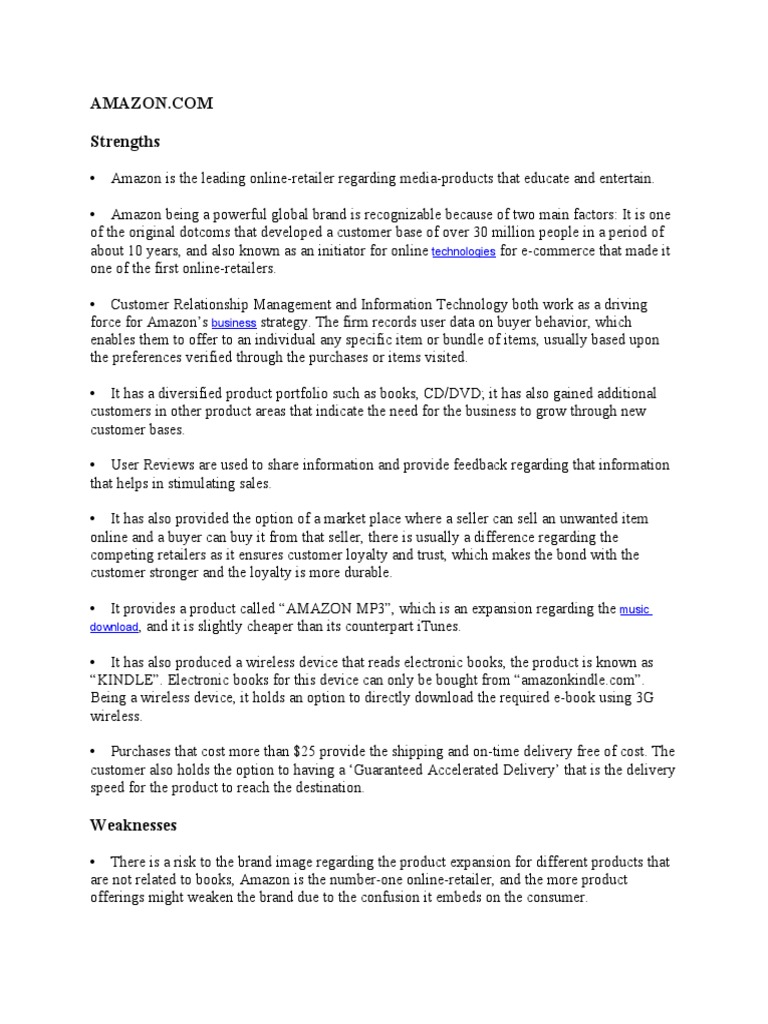 • Amazon being a powerful global brand is recognizable because of two main factors: It is one
