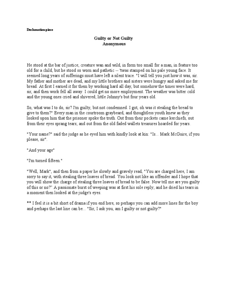 and perhaps the last line can be... "Sir, I ask you, am I guilty or not guilty?"