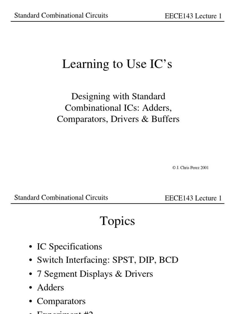 Learning To Use Ic'S: Designing With Standard Combinational Ics: Adders, Comparators, Drivers & Buffers