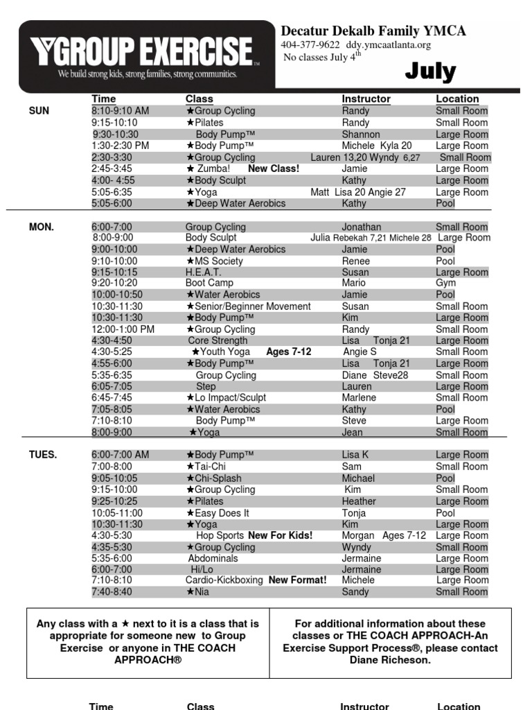 9:00-10:00 Group Cycling 7/26 8:45-10:15 Joseph Small Room