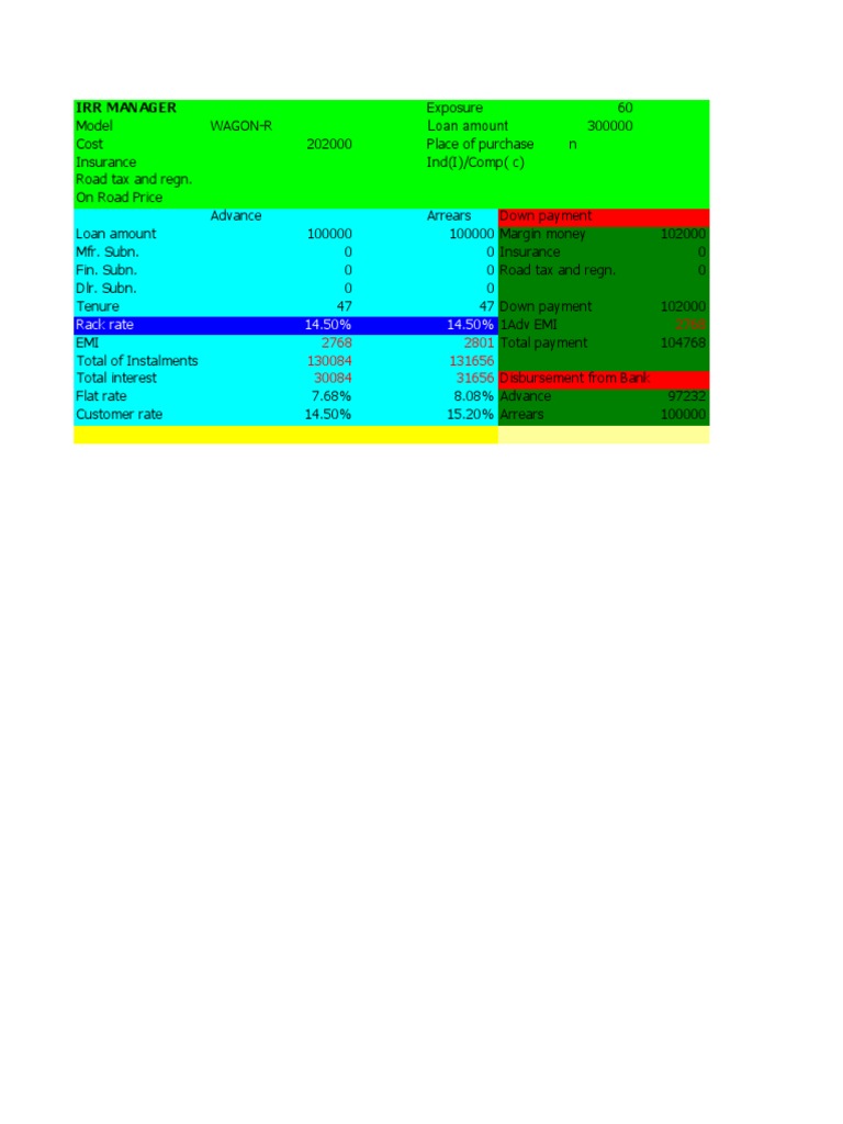 Rack rate 14.50% 14.50% 1Adv EMI 2768