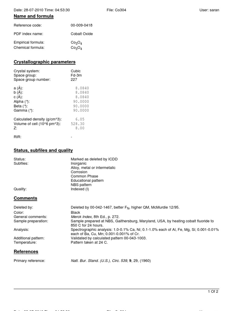 PDF index name: Cobalt Oxide