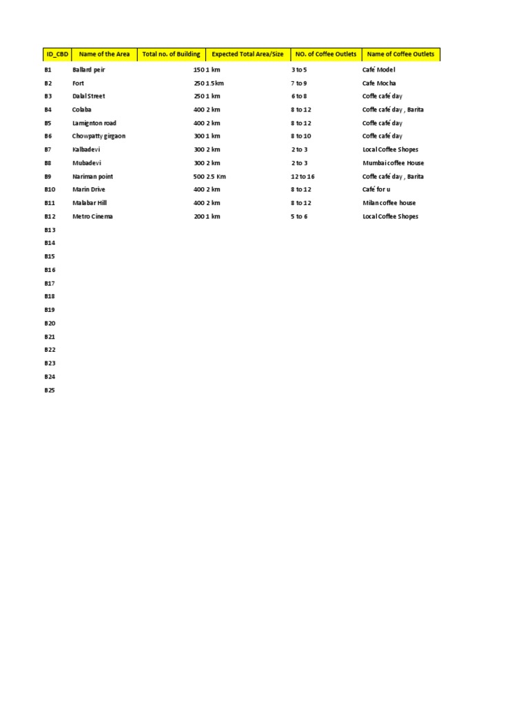 ID_CBD Name of the Area Total no. of Building Expected Total Area/Size NO.