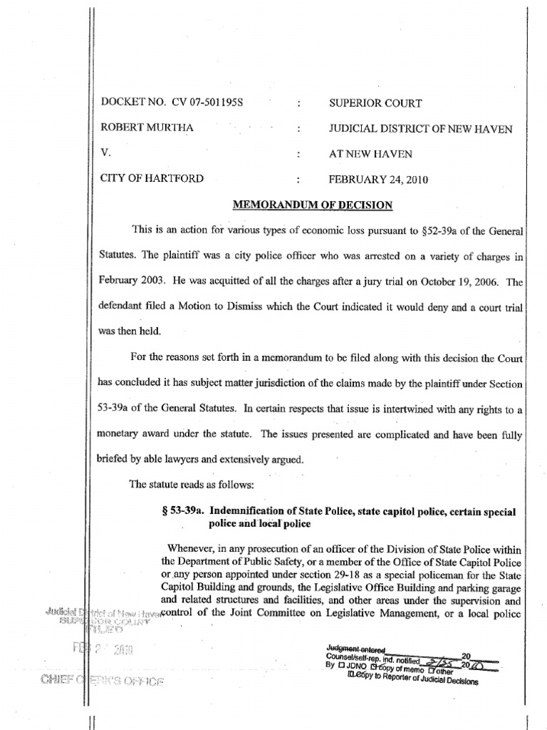 Murtha / Superior Court Decision