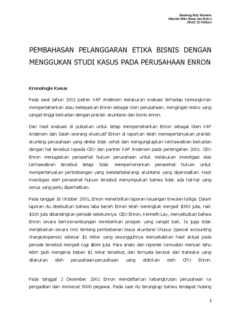 MENGGUKAN STUDI KASUS PADA PERUSAHAAN ENRON