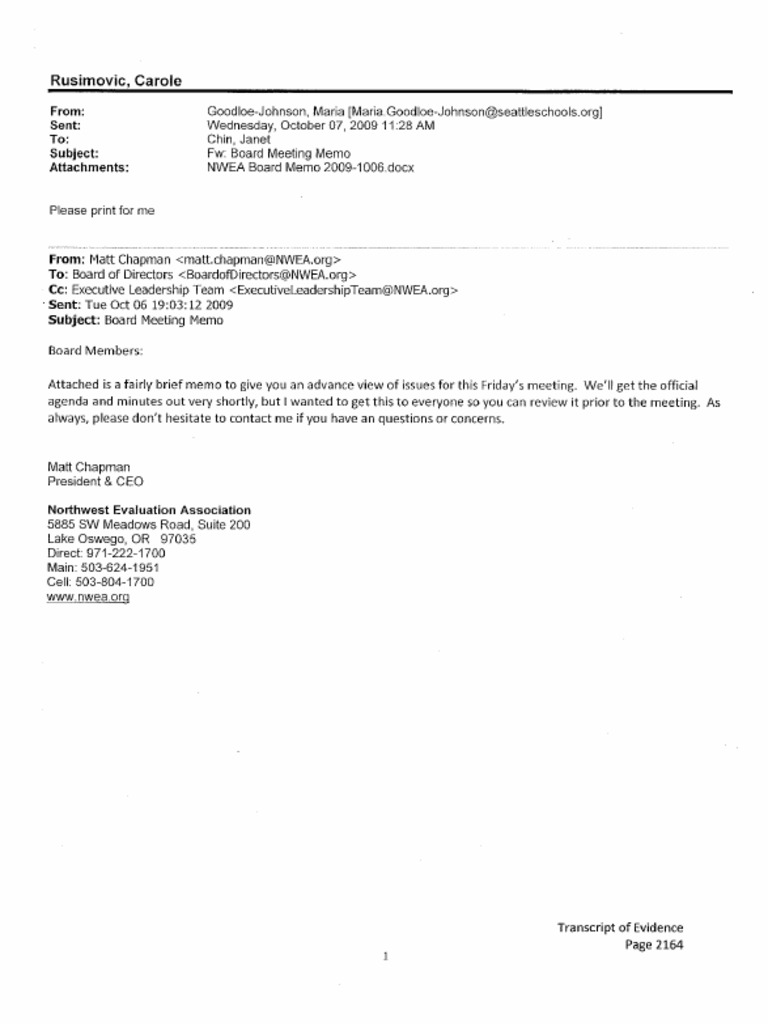 From: Matt Chapman <matt.chapman@NWEA.org> To: Board of Directors <BoardofDirectors@NWEA.org>