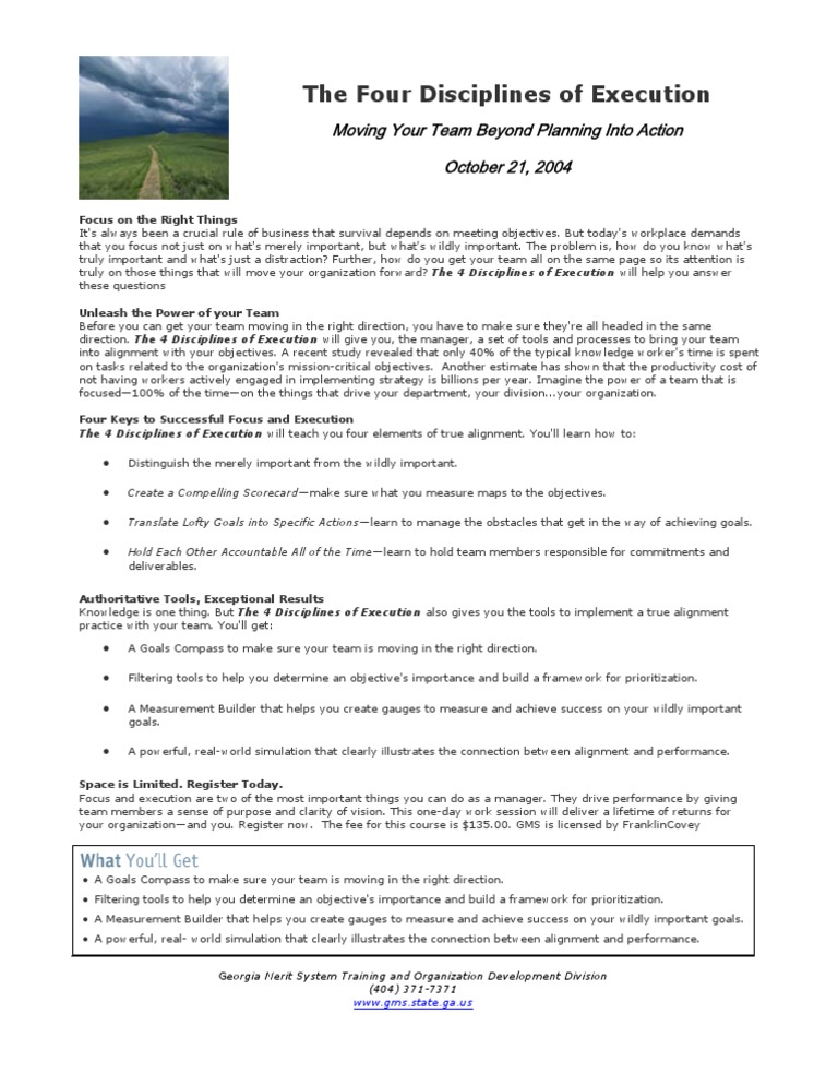 direction. The 4 Disciplines of Execution will give you, the manager, a set of tools and processes to bring your team