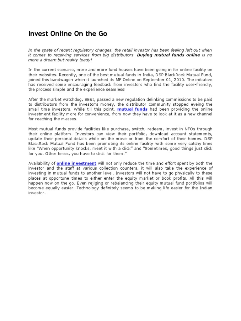 small time investors. While till this point, mutual funds had been providing the online