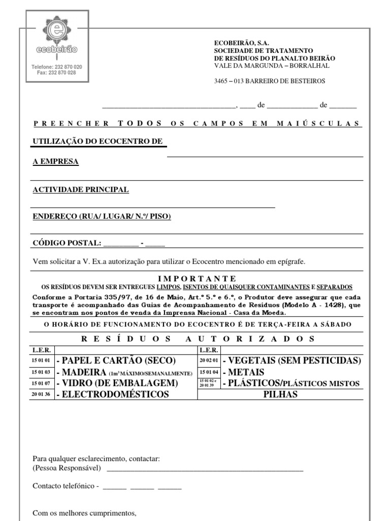 15 01 01 - PAPEL E CARTÃO (SECO) 20 02 01 - VEGETAIS (SEM PESTICIDAS)