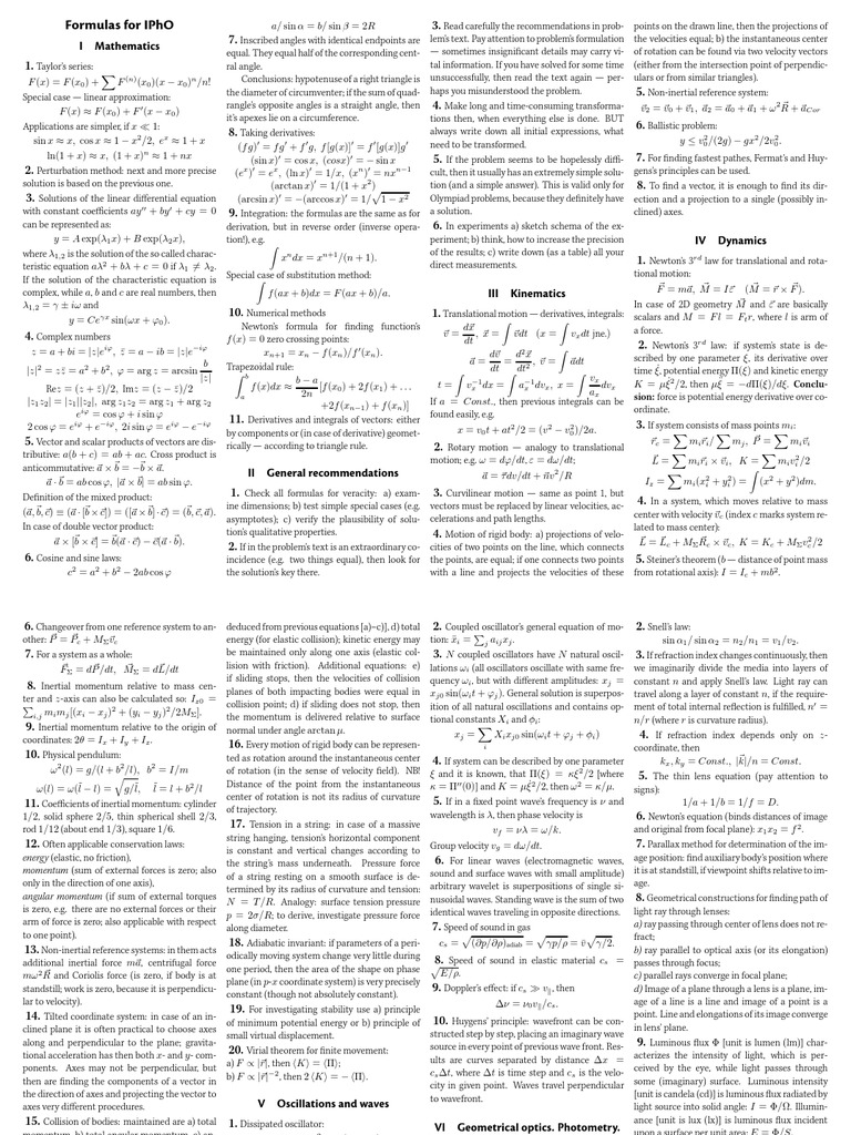 Formulas For Ipho: I Mathematics 1. 7. 3