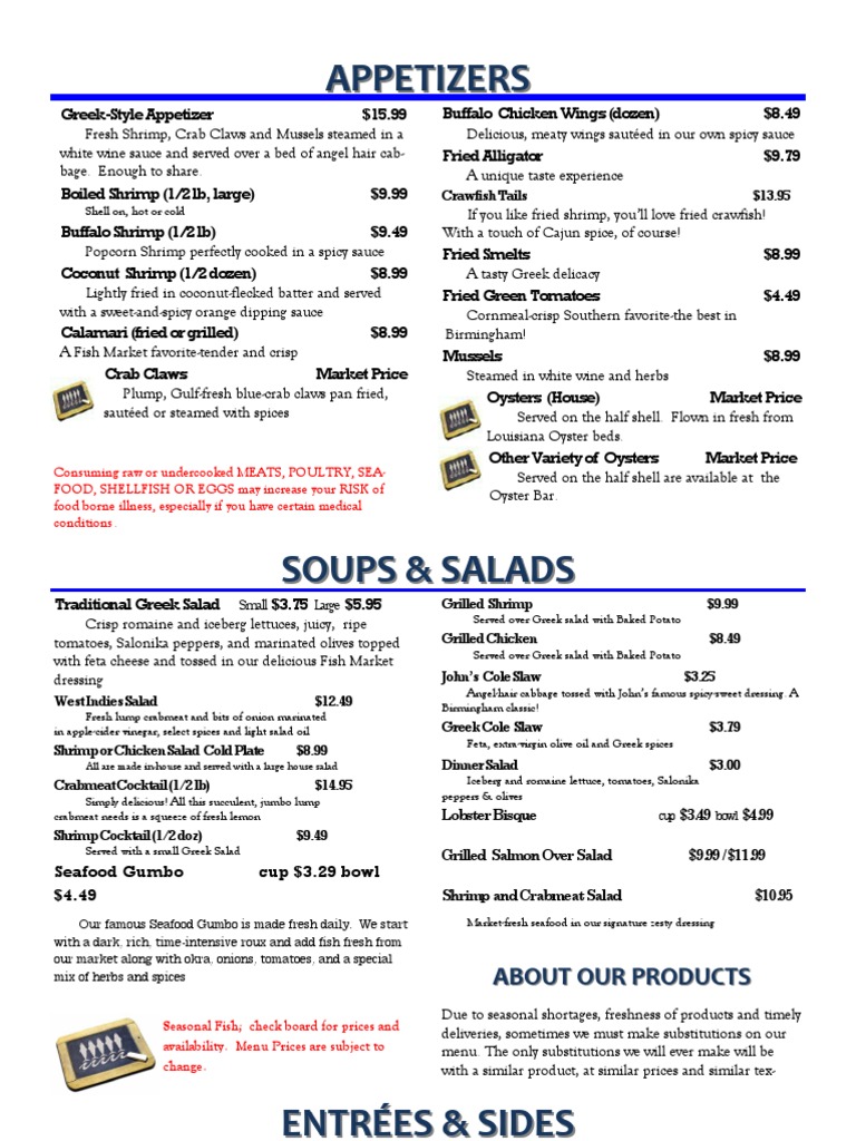 All items are $6.99 Blue-Crab Claws See Board