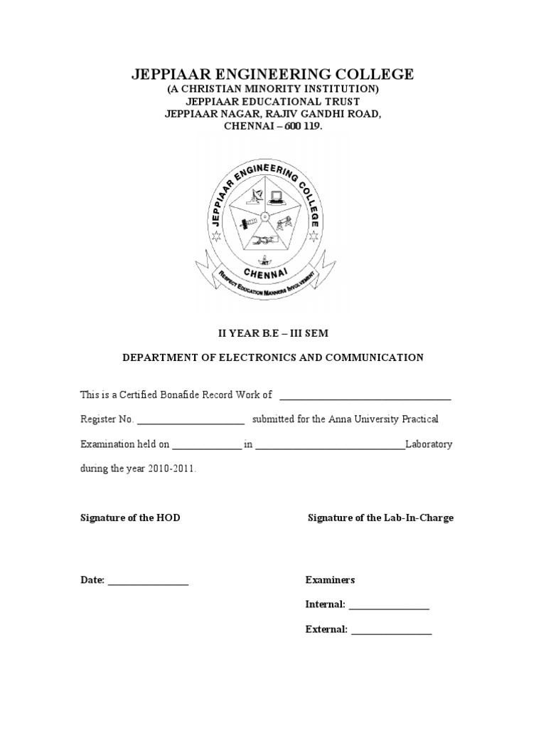 Register No. ____________________ submitted for the Anna University Practical