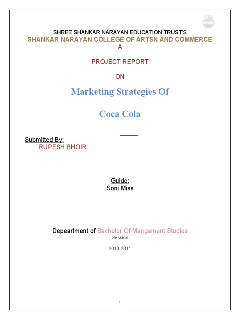 Strategies Of Coca Cola” as a partial fulfillment of their B.M.S.