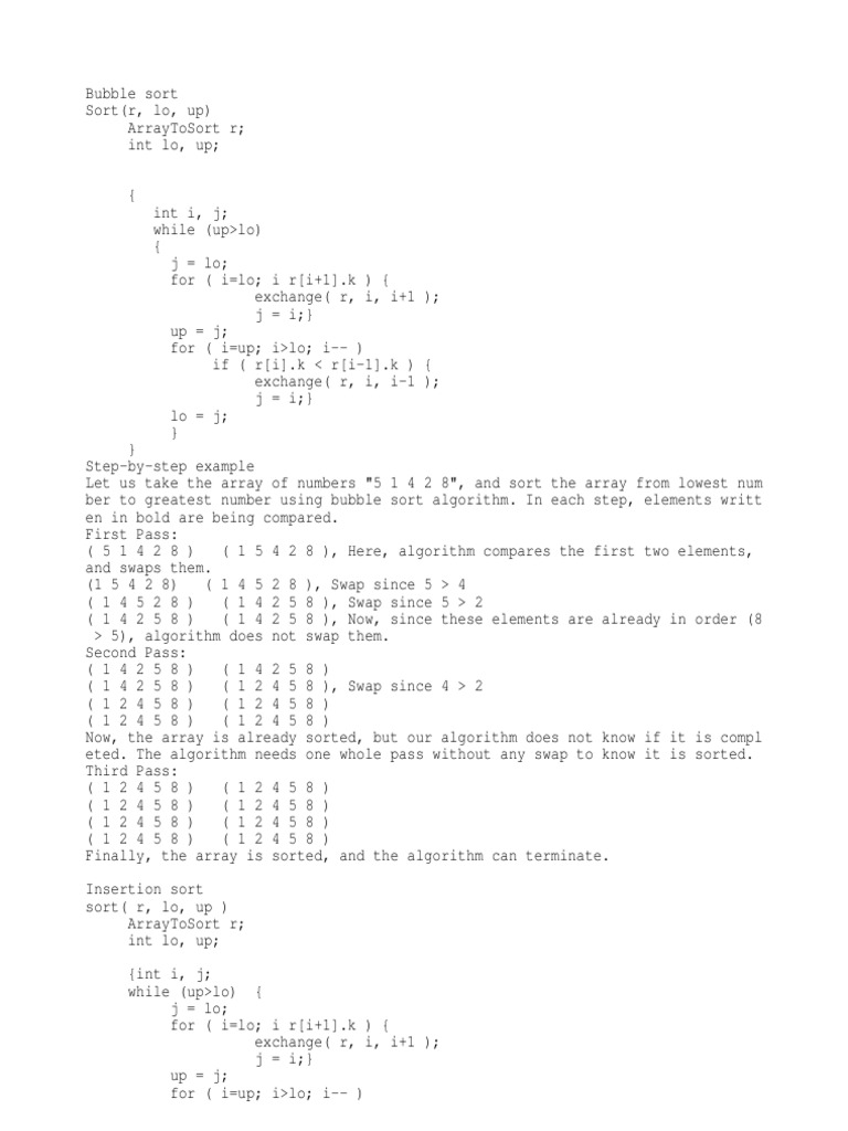 ber to greatest number using bubble sort algorithm. In each step, elements writt