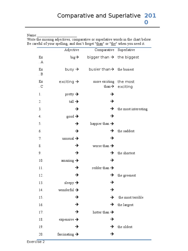 Adjective Comparative Superlative
