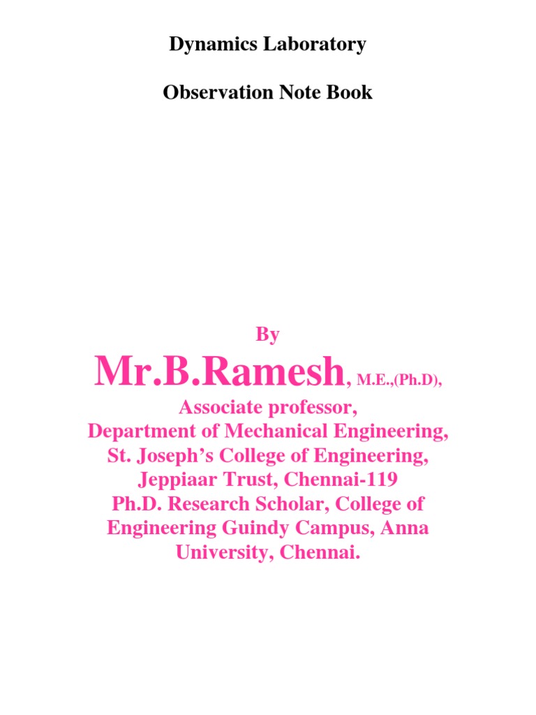 Mr. B. Ramesh, M.E.(Ph.D.)